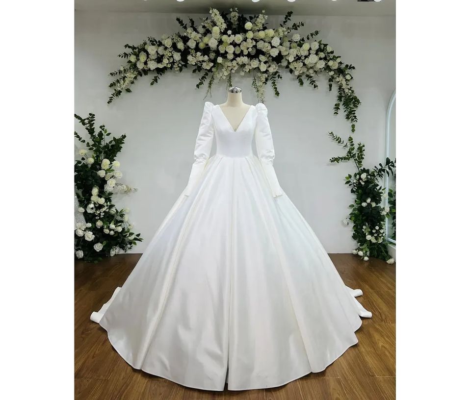 OEM Manufacture High Quality Satin Wedding Dress Ball Gown Long Sleeve Simple Vintage Style Luxury Lace TNBP No. 03 Sale