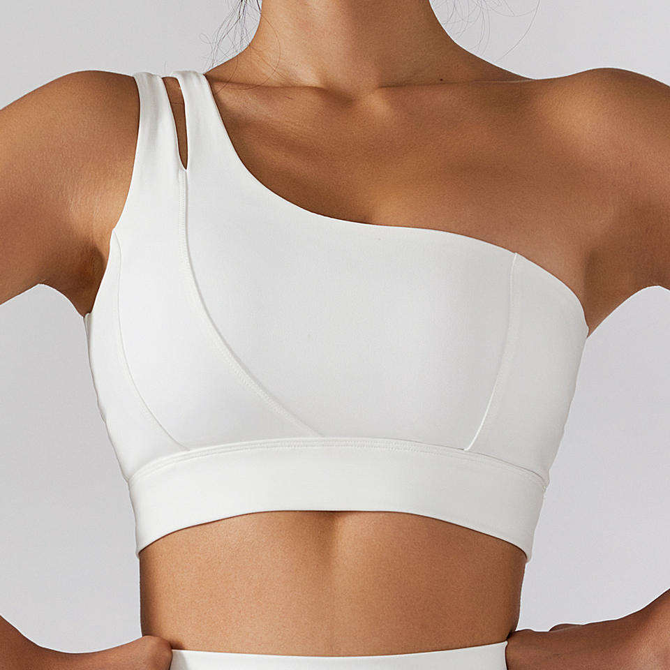 OEM Manufacture Women's Sexy Solid Backless Crop Sports Bra One Shoulder Yoga Workout Top Breathable Plus Size Fitted Tops