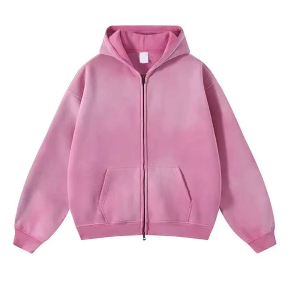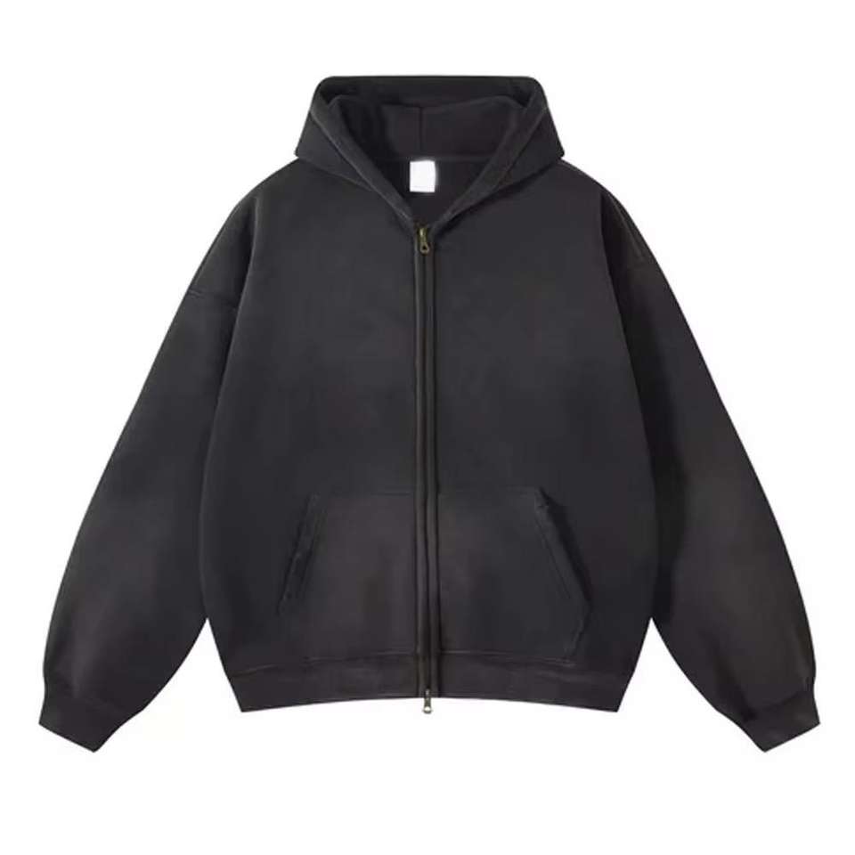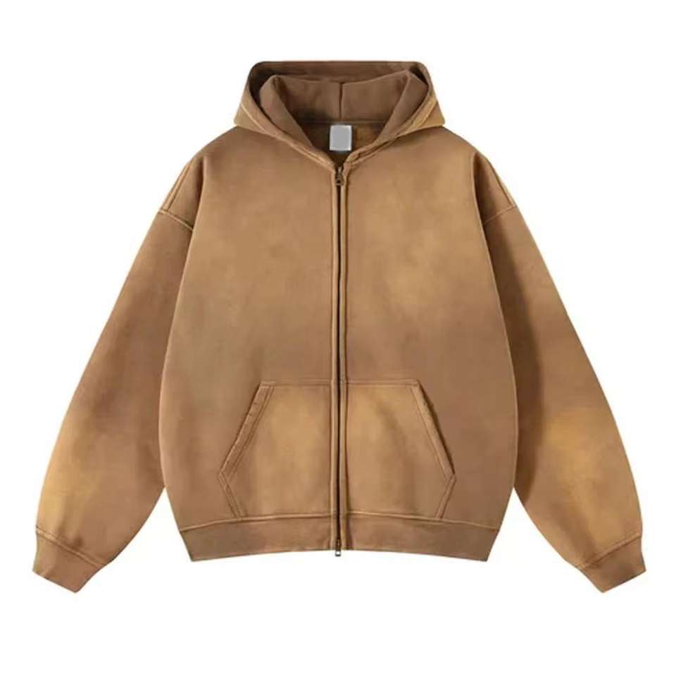 OEM Manufacturer Acid Wash Full-Zipper Distressed Hoodies 100% Cotton Windproof Waterproof Vintage Winter Men