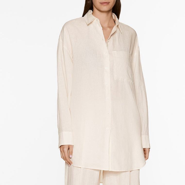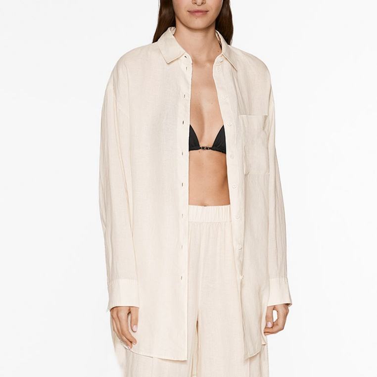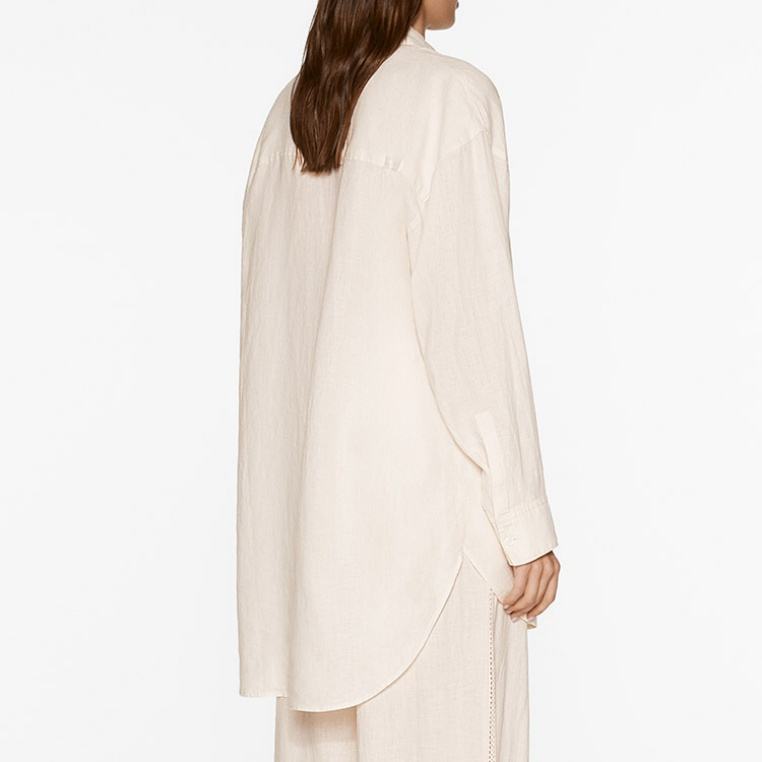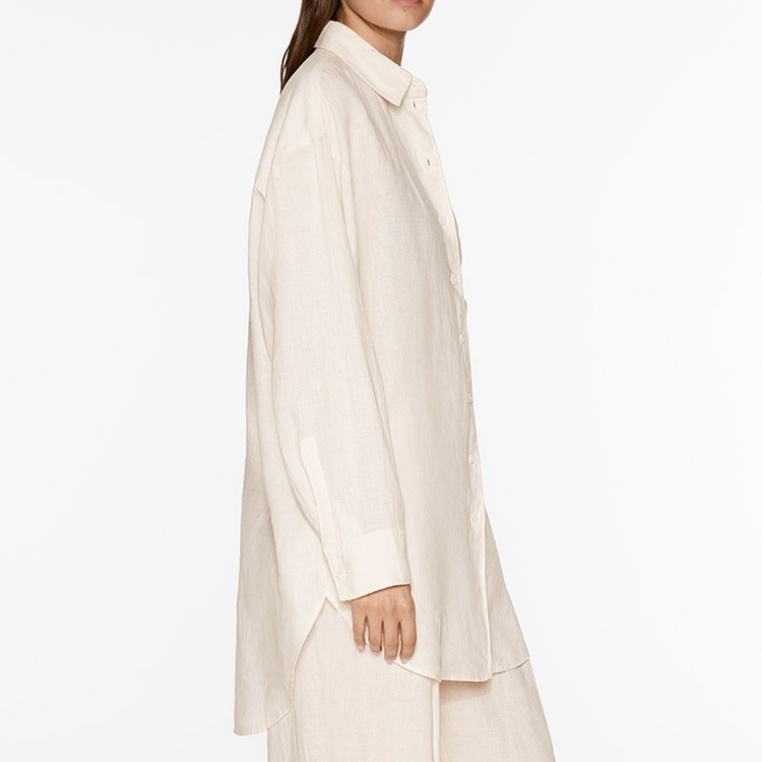 OEM Manufacturer Beach Casual Comfort Solid Color Shirt Custom Oversized Long Sleeve 100% Linen Shirt