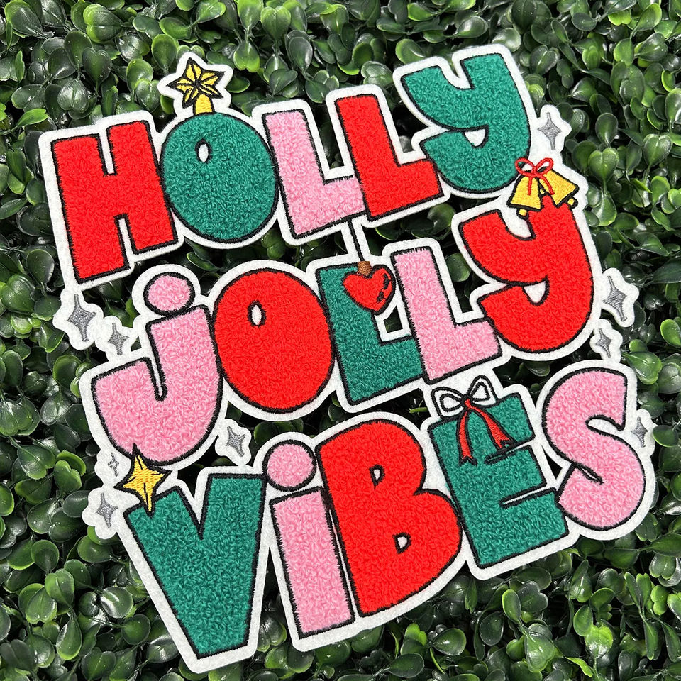 OEM Manufacturer Bulk Iron on Chenille Patches Holiday Large Letters Christmas Design Embroidered Custom Logo Sequin Patches