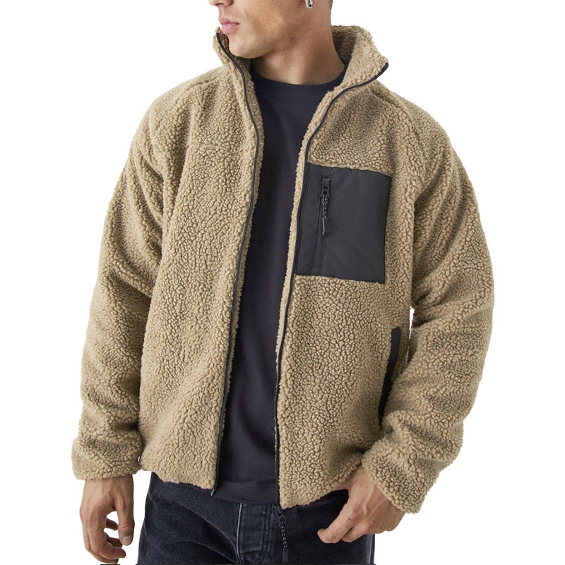 OEM Manufacturer Custom Blanket Reversible Garment Shearling Zip up Bomber Winter Warm Coat Polar Fleece Sherpa Jacket for Men