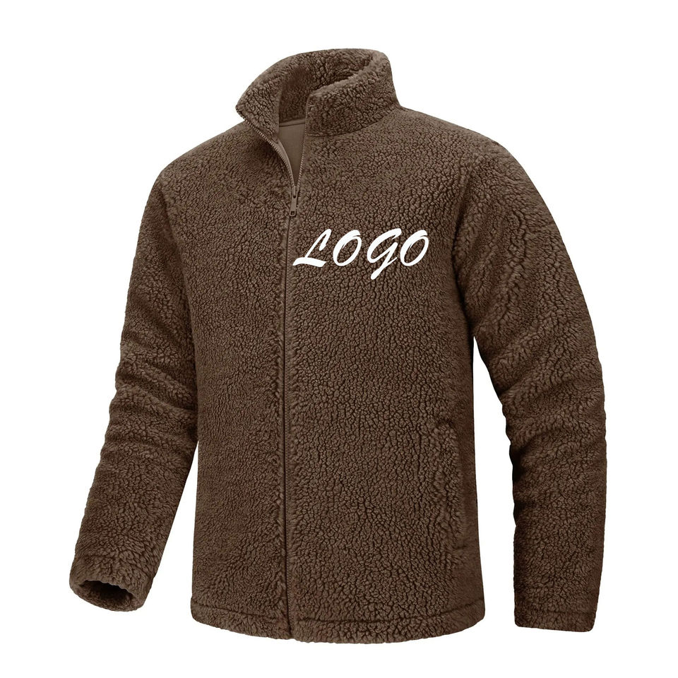 OEM Manufacturer Custom Logo Winter Sherpa Fleece Jacket with Stand Collar and Front Logo Premium Zipper Oversized Fitness Men