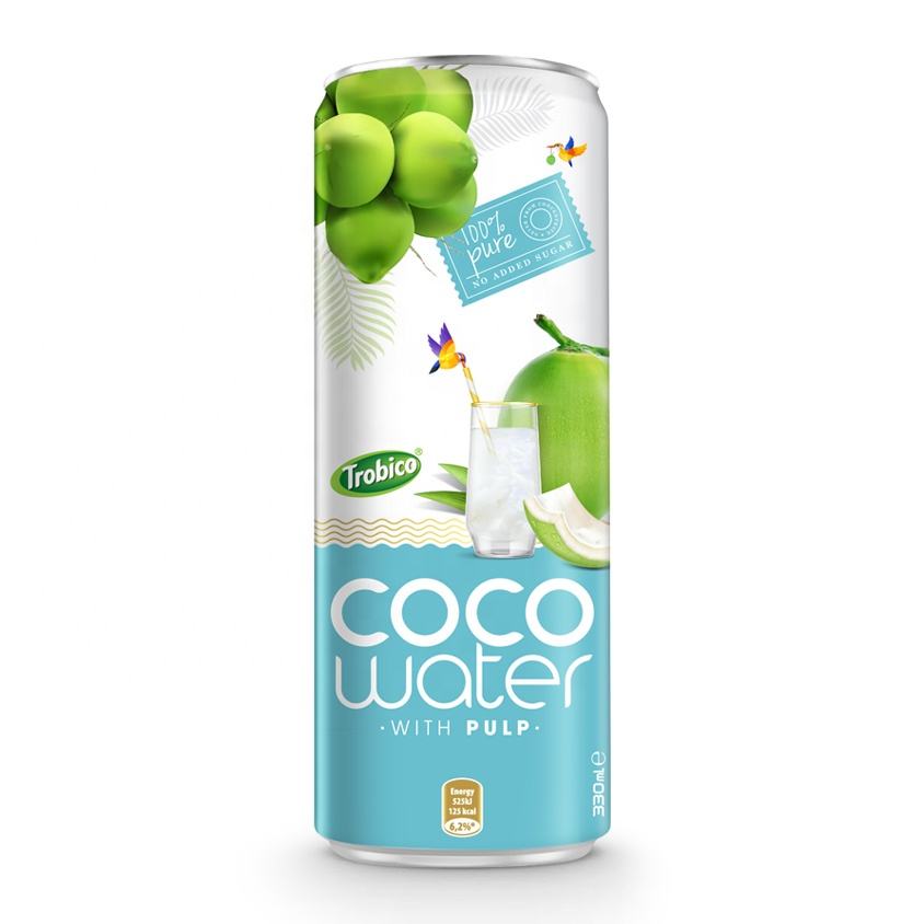 OEM Manufacturer From Vietnam 330ml Alu Can Blueberry Flavor Coconut Water with Pulp Filtered Puree Type