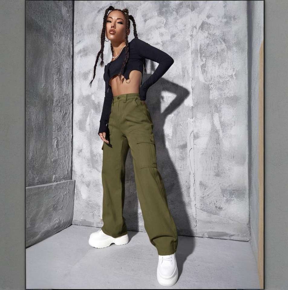 OEM Manufacturer High Waist Streetwear Baggy Casual Ladies Trousers With Pockets Long Parachute Cargo Pant for Women