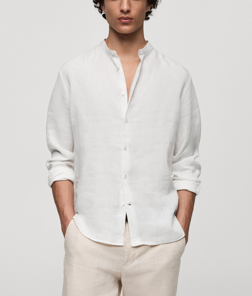 OEM Manufacturer's High Quality Custom Linen Shirts for Men 100% French Linen Stand Mao Collar Long Sleeve Casual Summer Fashion
