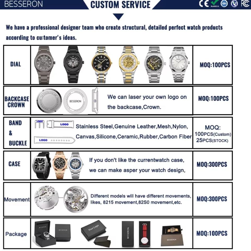 OEM Manufacturers' Custom Logo Fashion Business Luxury Watches Trendy Design MIYOTA Quartz Stainless Steel Band 22mm for Men