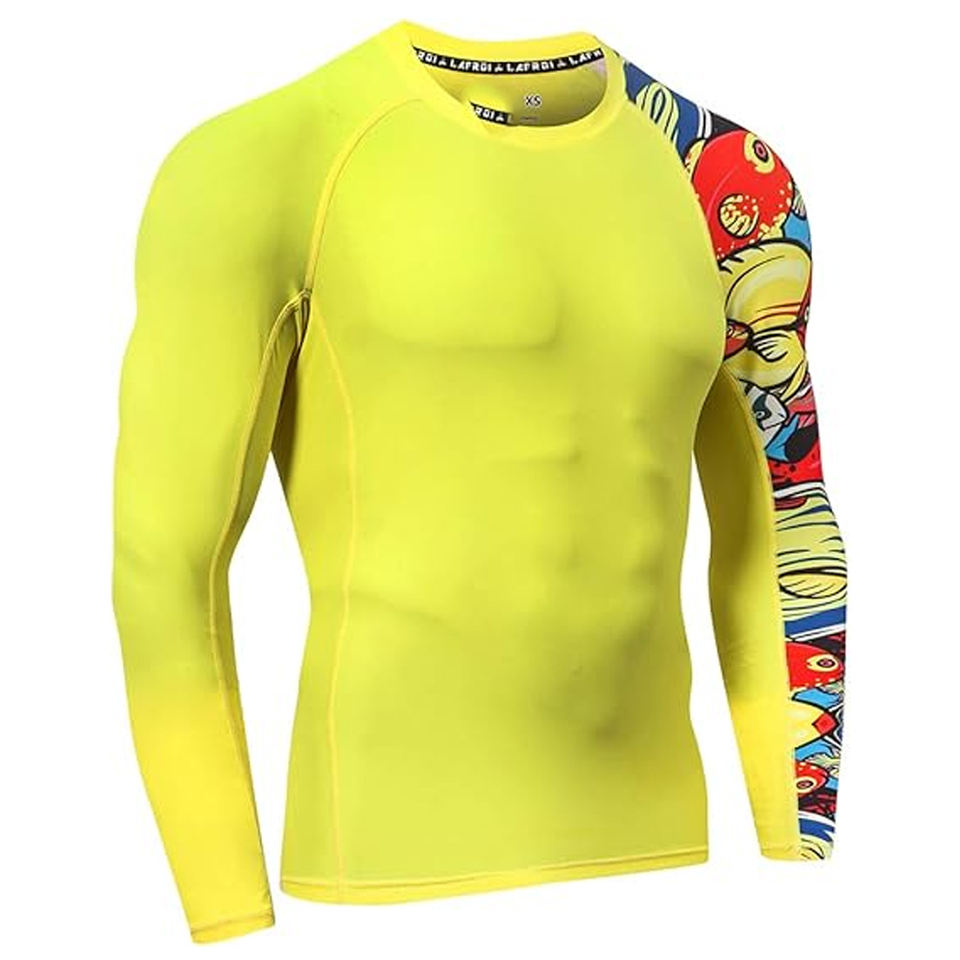 OEM Men Long Sleeve Rash Guard Compression Shirt Graphic Print UV Protection Custom Branding Bulk