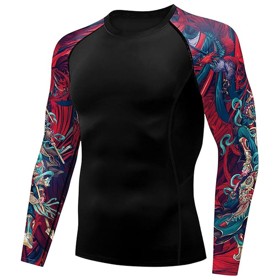 OEM Men Long Sleeve Rash Guard Compression Shirt Graphic Print UV Protection Custom Branding Bulk