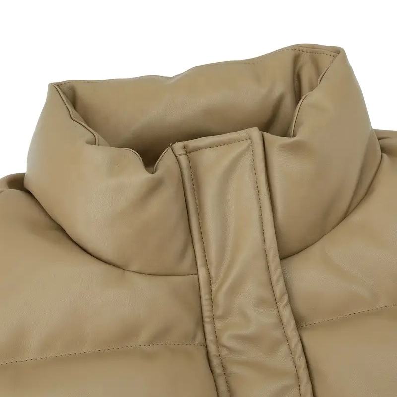 OEM Custom Men's Winter Jacket Padded Bubble Puffer Coat with Leather Warm Quilted Design for Men and Women