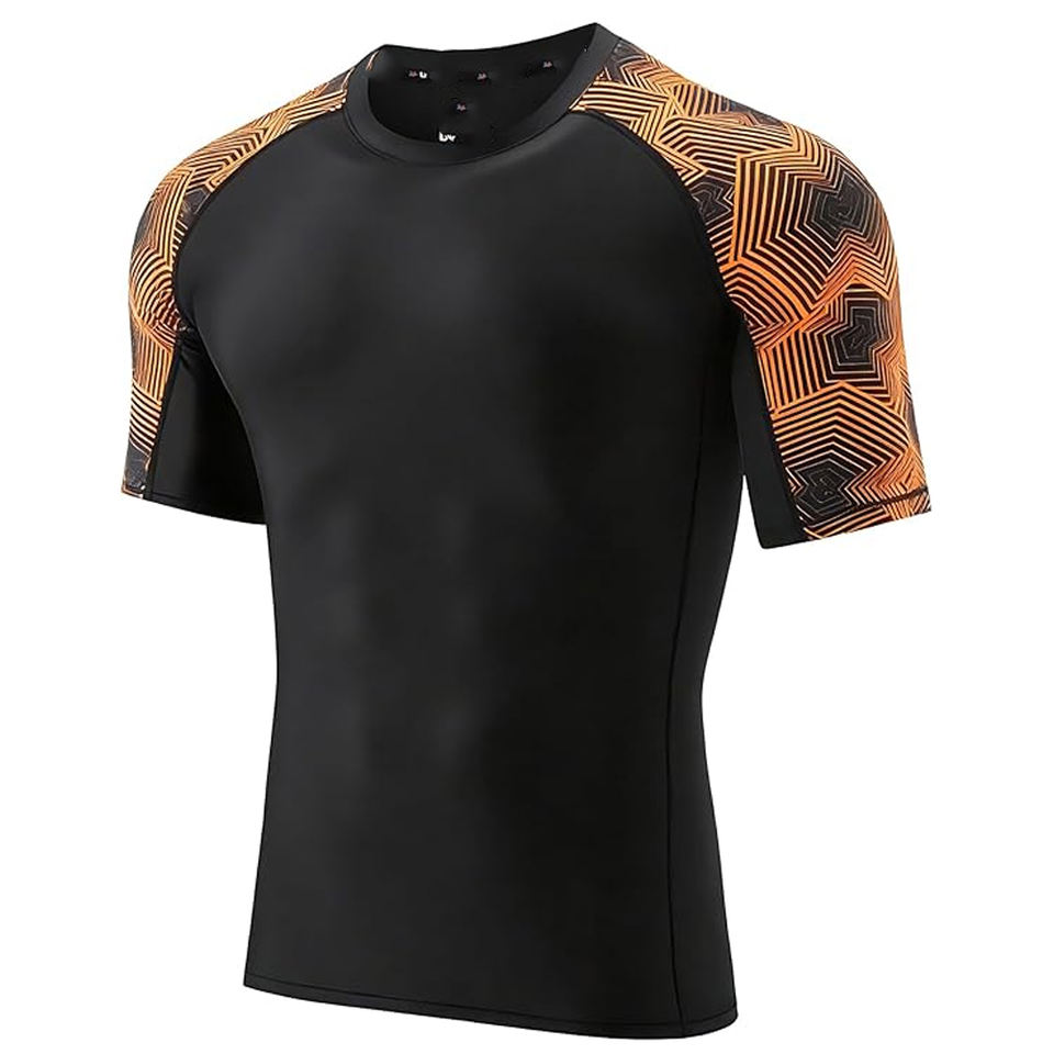 OEM Men Rash Guard Compression T Shirt Short Sleeve Swim Shirt UV Protection Custom Logo Wholesale Bulk