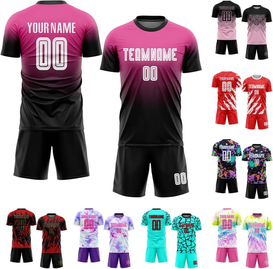 OEM Men's 100% Polyester Custom Sublimation V-neck Football Jersey Set Quick Dry Breathable Anti-Bacterial Custom Logo Soccer