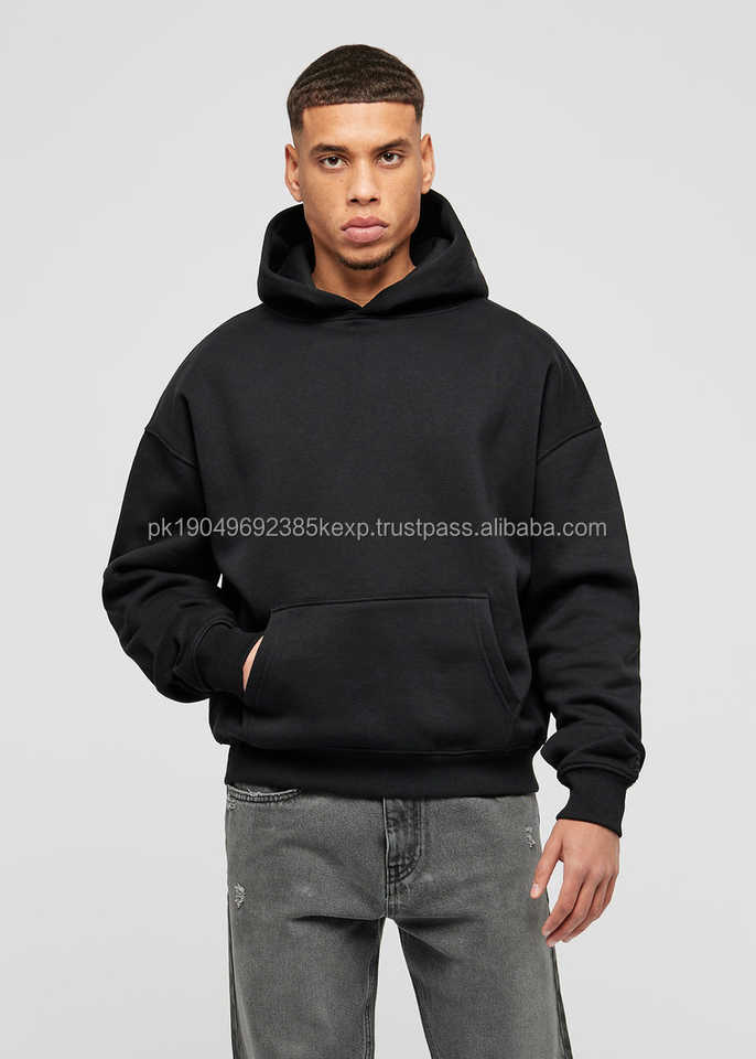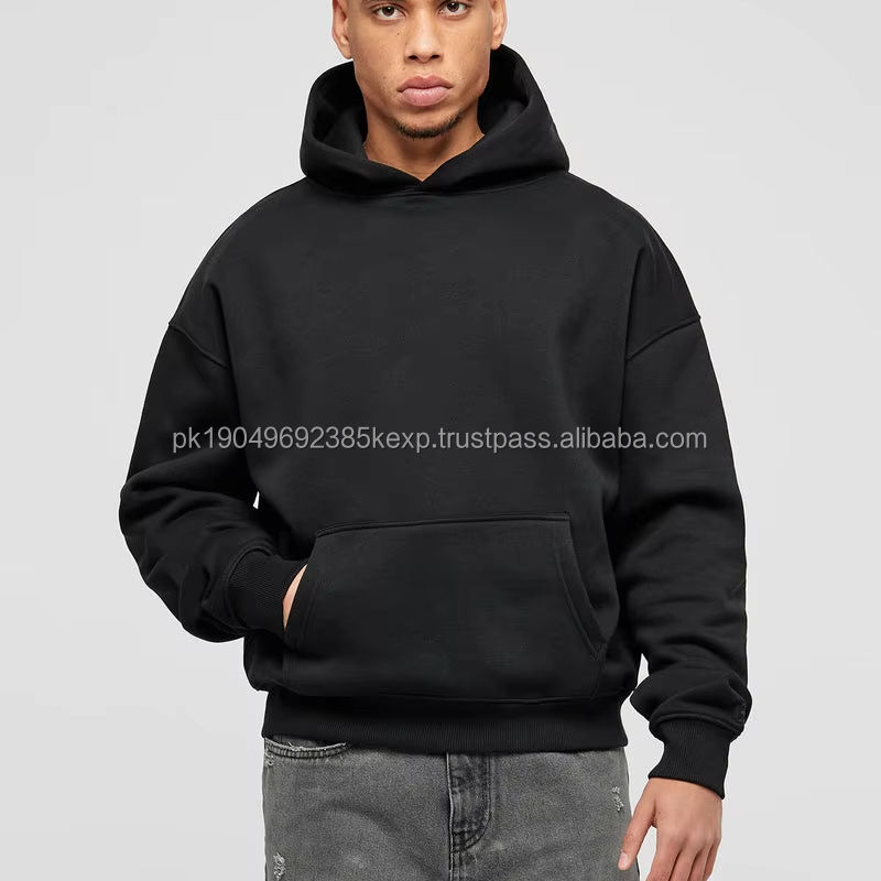 OEM Men's Black Oversize Pullover Hoodie Set 50% Cotton 50% Polyester Long Sleeve Printed Sweatshirt Washed Hooded Wholesale
