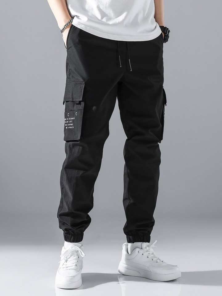 OEM Men's Cargo Sweatpants 6 Pockets Design Custom Canvas Eco-Friendly Lightweight Flat Front Black Streetwear Trousers