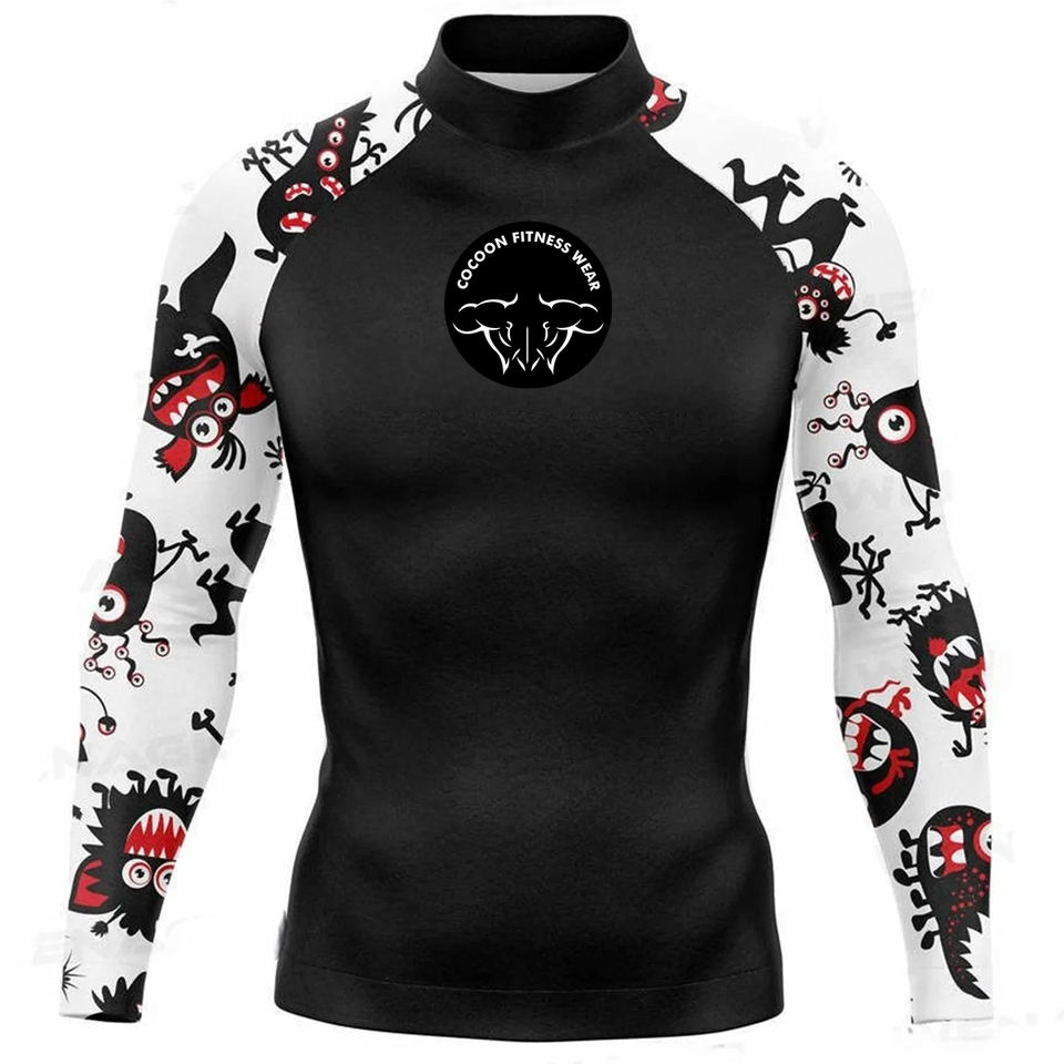 OEM Men's MMA Rashguard Long Sleeve Compression T-shirt Breathable UPF50 Quick Dry for Muay Thai BJJ Jiu Jitsu Boxing Fitness