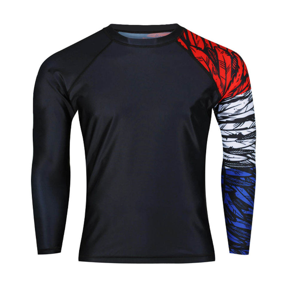 OEM Men's Premium Quality Rash Guard Sublimation Printed Polyester Front Gym Fitness Surfing Diving Compression Shirts