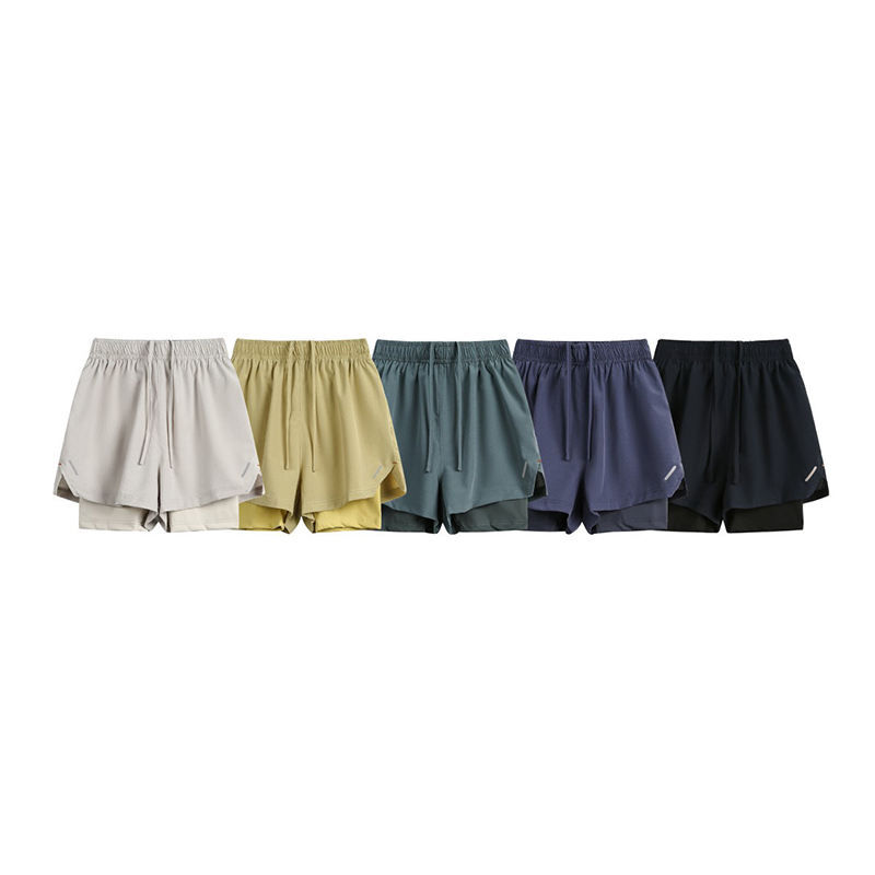 OEM Men's Solid Polyester Running Shorts Double Layer Breathable Eco-Friendly Drawstring Closure Mid Waist Quick Drying High