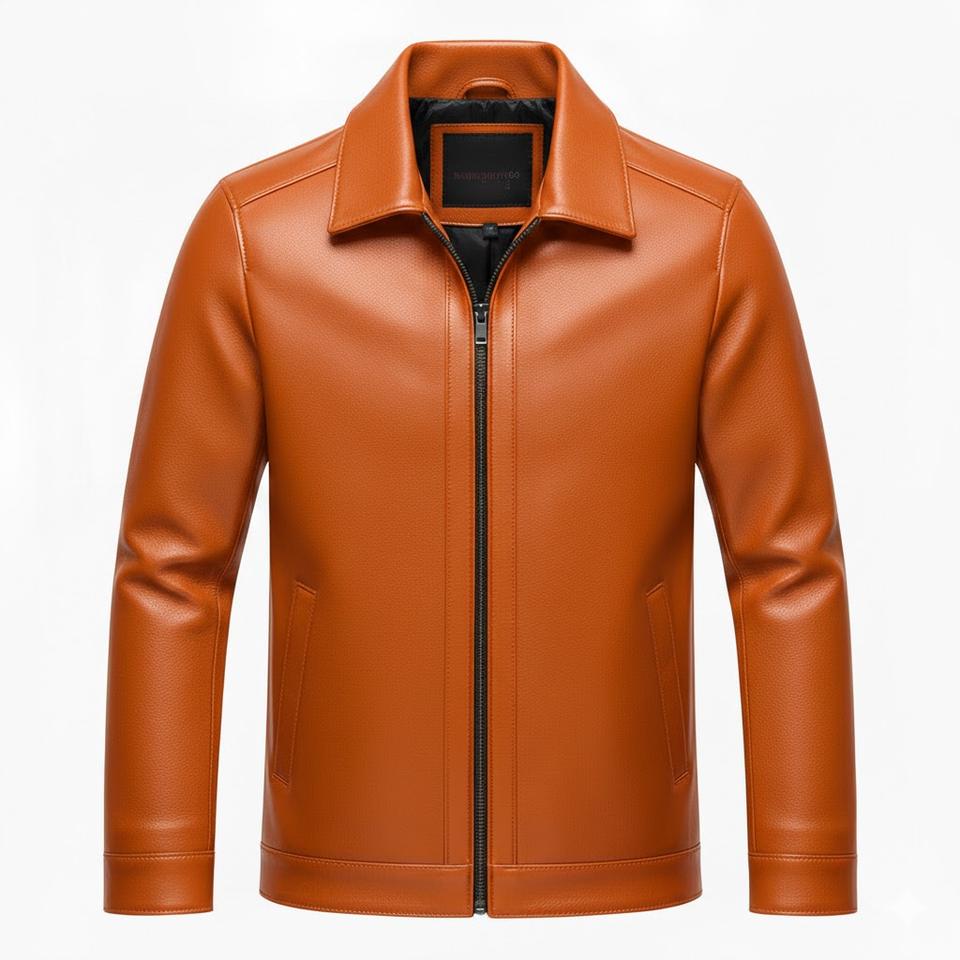 OEM Mens Casual Street Style Long Leather Jacket with Textile Collar