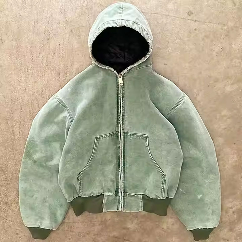OEM Mens Hot Selling basics Zipper Hoodies Made in Cotton Fleece Pure Color Acid Wash Hoodies for Men