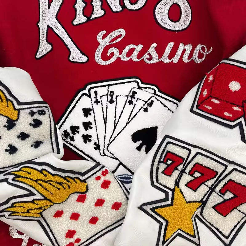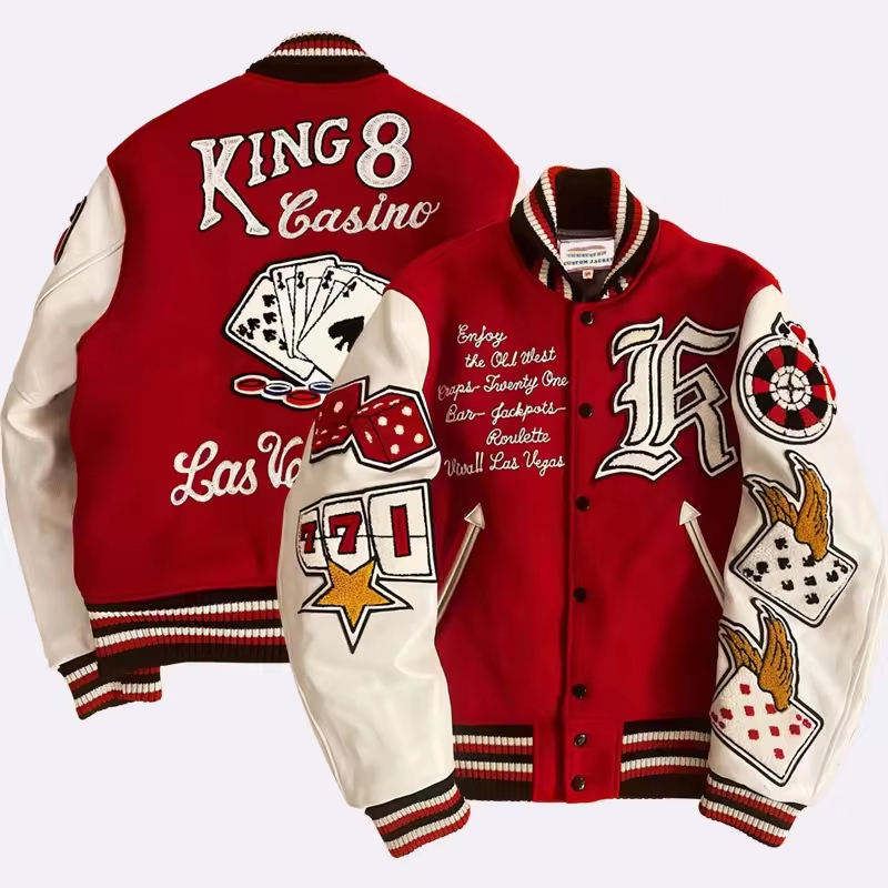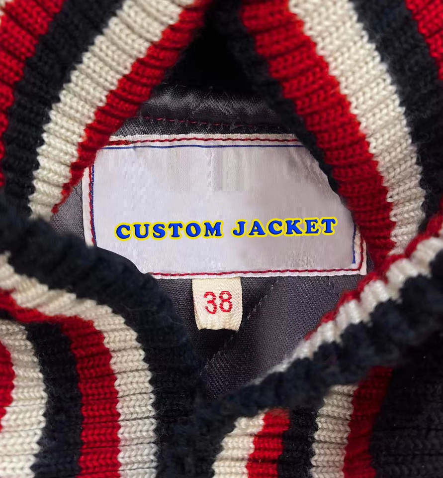 OEM Mens Letterman Varsity Motorcycle Jacket Warm Winter Baseball Wool Sleeves Stand Collar Waterproof Chenille Embroidered Logo