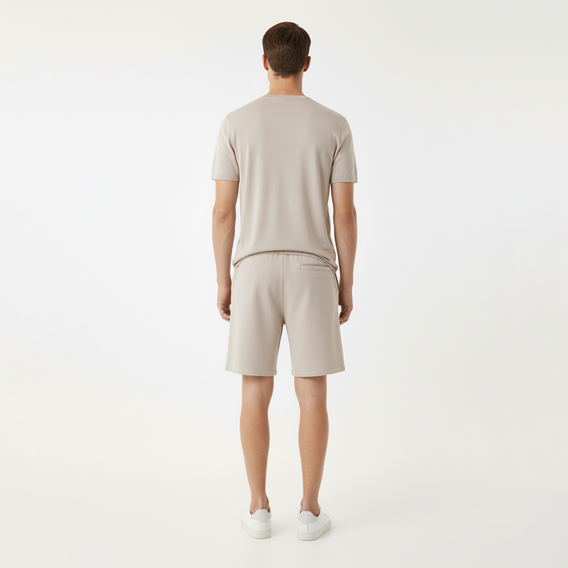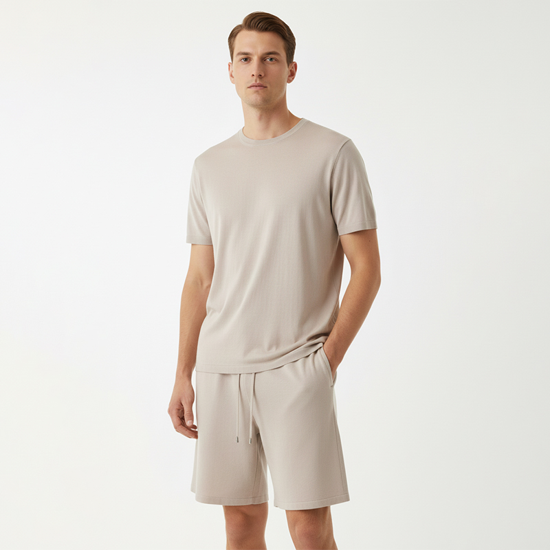 OEM Mens Summer Lightweight Cotton Nylon Knit T Shirt Knit Shorts Knit Set Sport Solid Knit Sweater