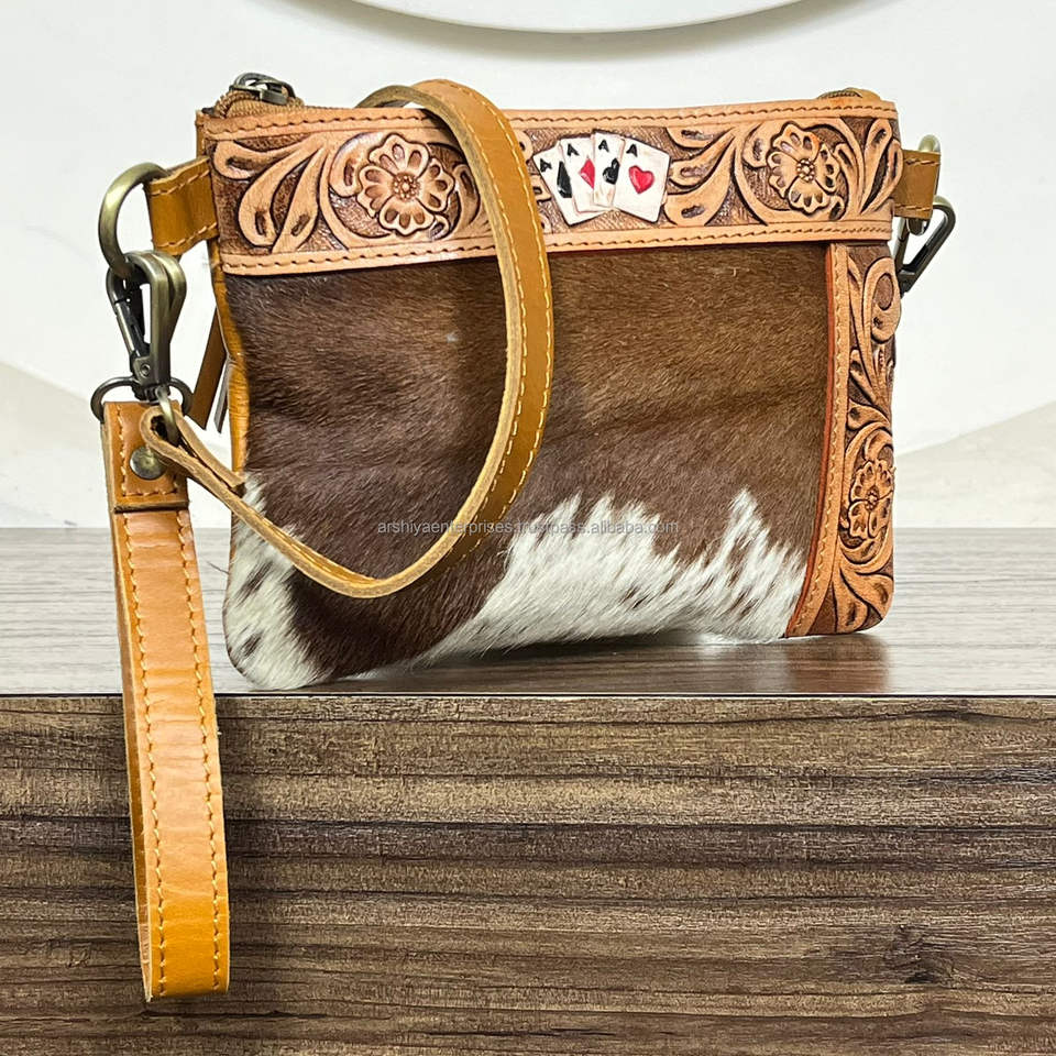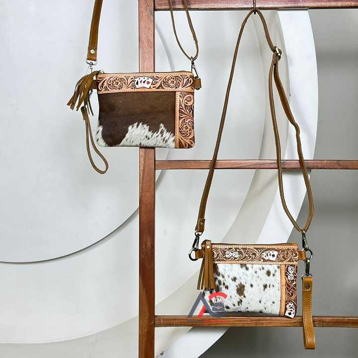Product name:Hand Tooled Cowhide Checkered Fashionable Crossbody Bag
