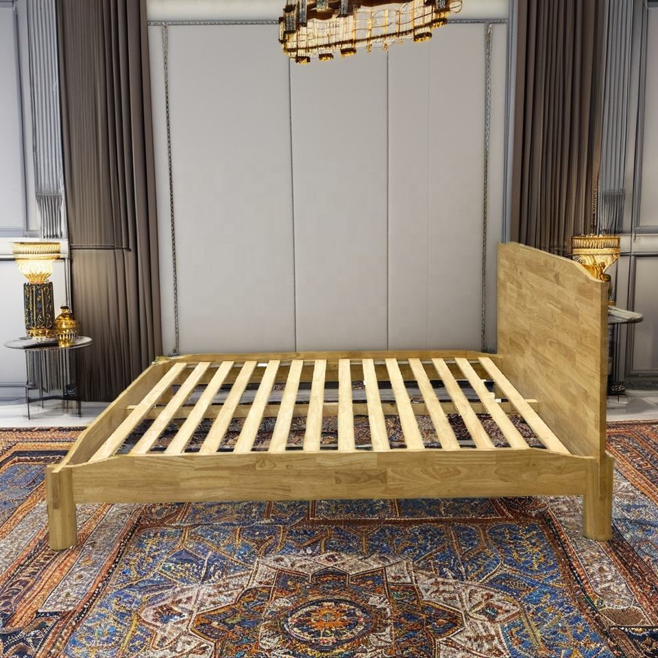 OEM Modern Wooden Queen Size Bed Frame With Headboard Solid Wood Bed Bedroom Furniture No Tool Assembly Flexible MOQ