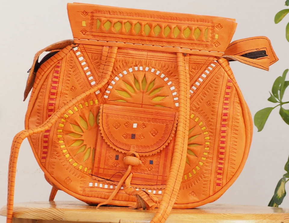 Bright Orange Moroccan Shoulder Bag In Natural Leather