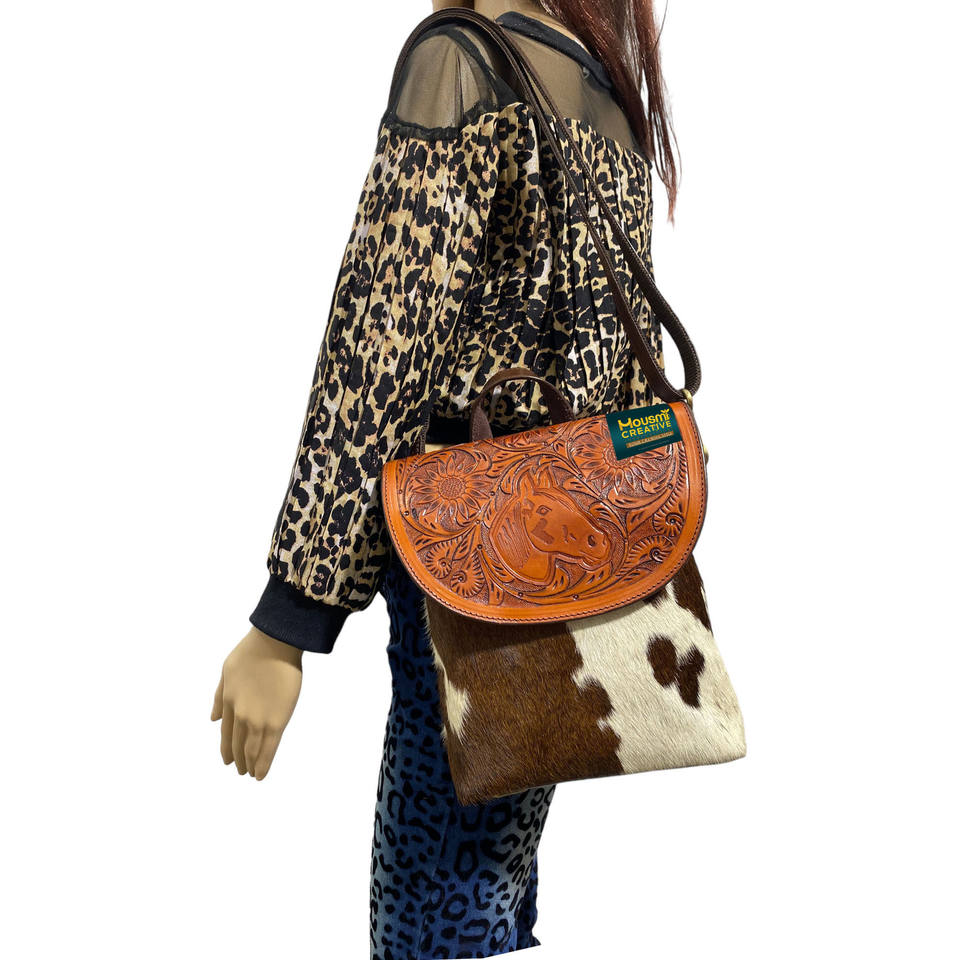 Natural Cowhide Hair on Crossbody to Backpack Convertible Backpack