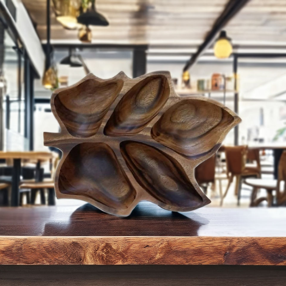 OEM Natural Wood Serving Tray Easy Use Tableware for Fruits Afternoon Tea Sets Bakery Made in Thailand -TLS05slot