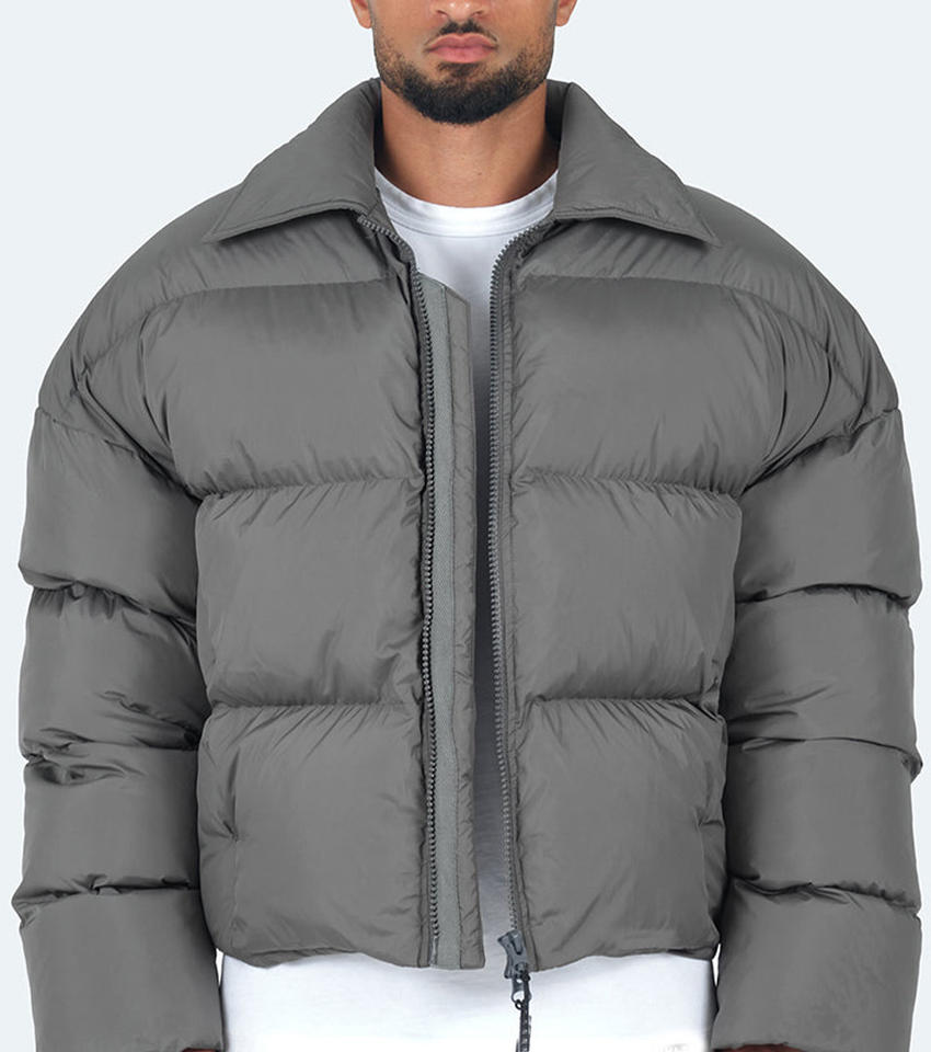 Custom Logo Vintage Zipper Collar Puffer Jacket