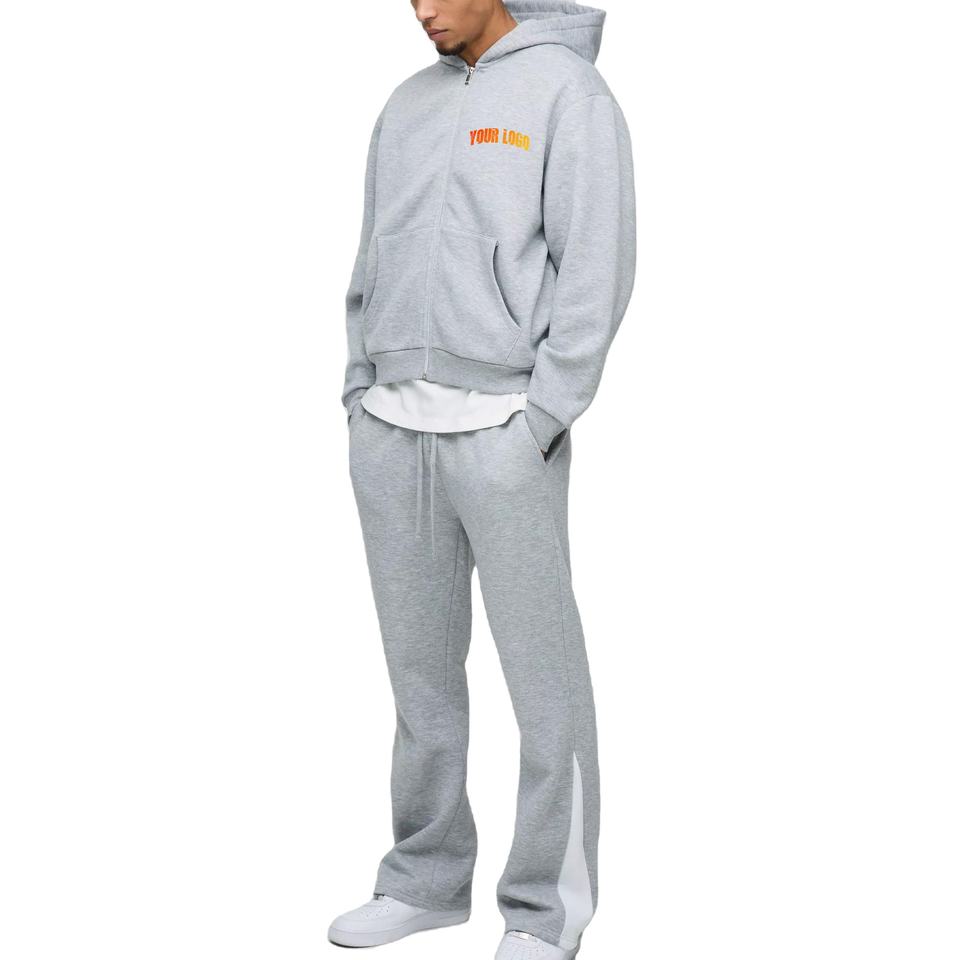 OEM/ODM 100% Cotton Fleece Custom Printed Zip-Up Flare Sweat Suit Solid Pattern Hooded Jogger Pants Set for Men for Winter