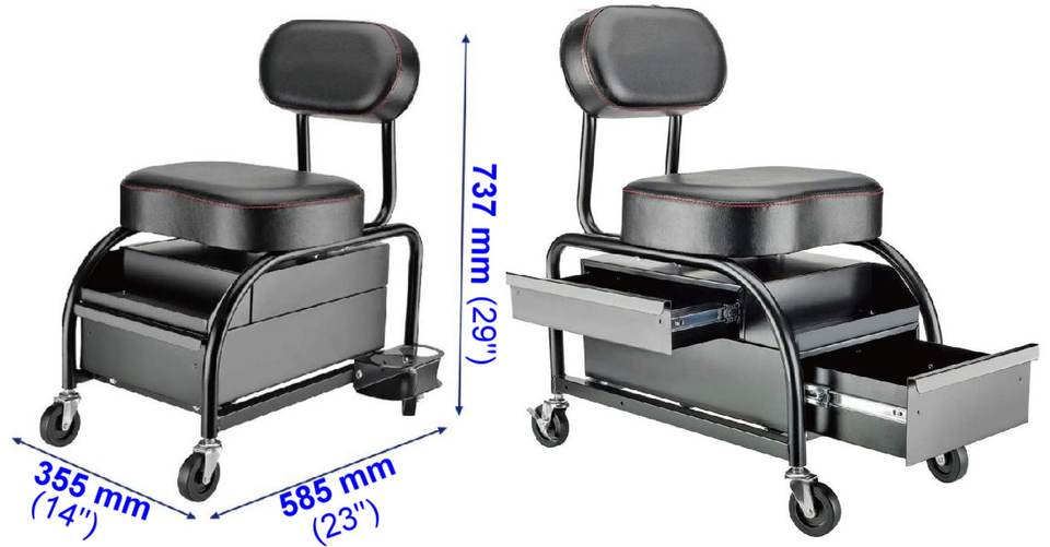 Garage Stool with 2 Sliding Storage Drawersfeature