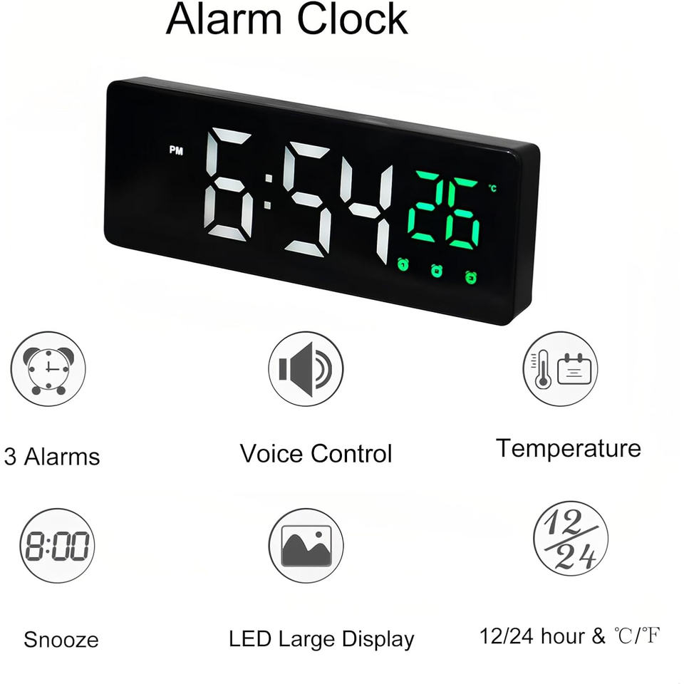 Temperature, Lighted, Voice Control, 12/24 Hour Display+alarmFeature
