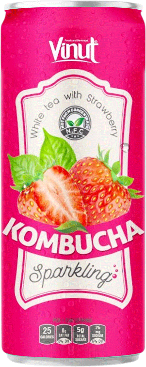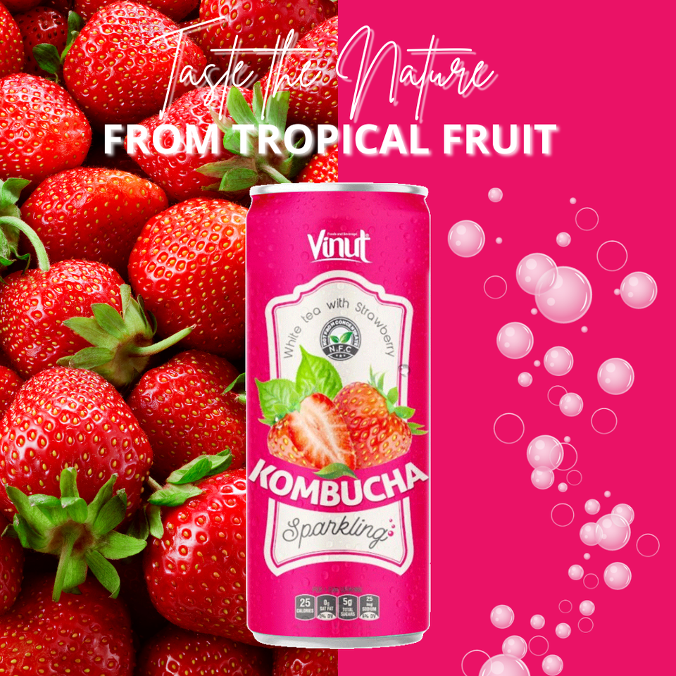 OEM/ODM 250ml Sparkling Kombucha White Tea with Strawberry No Sugar Low Fat VINUT Brand Can (Tinned) Wholesale From Vietnam