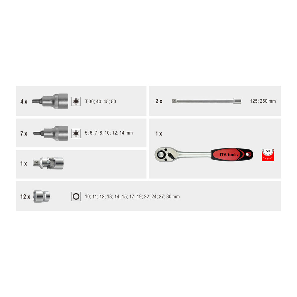 bit socket, extension bar, ratchet handle, Socket, Universal Jointtool includes
