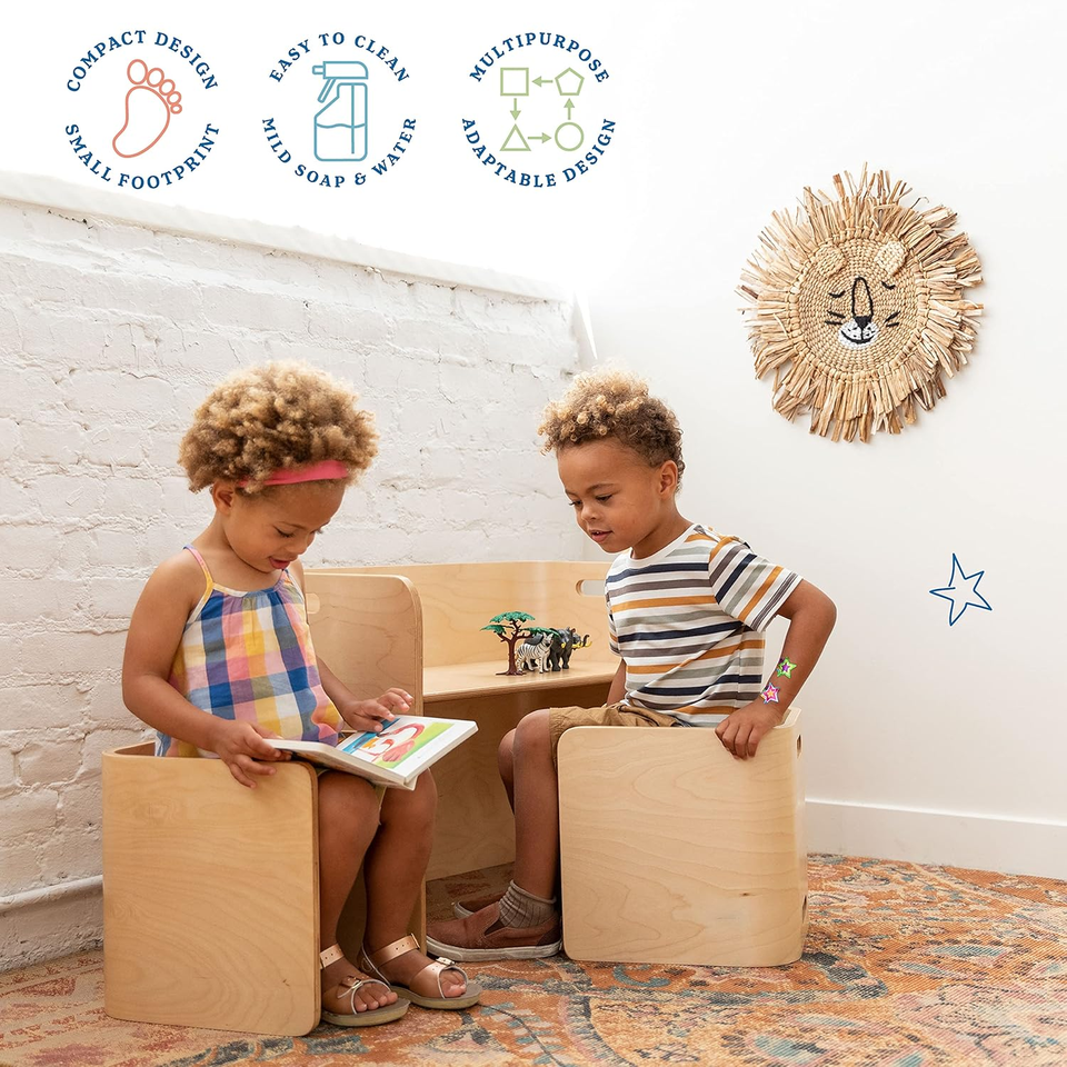 OEM ODM 3-Piece Natural Bentwood Multipurpose Furniture Set Kids Table Chair & Toy Chest Organizer