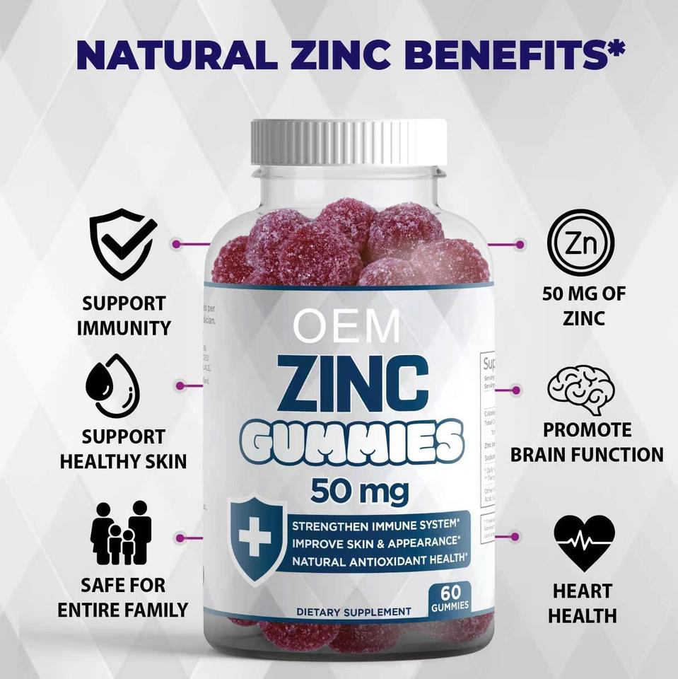 OEM/ODM 50mg Zinc Immune Gummies Healthy Immune Support Supplement for Adults Private Label for Men Women Minerals Product
