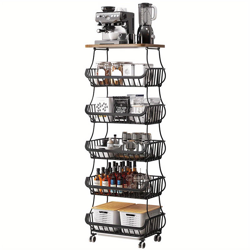 OEM/ODM 6-Layer Stackable Wooden Fruit Vegetable Storage Basket Kitchen Cart with Wire Finishing for Onion Direct From Factory