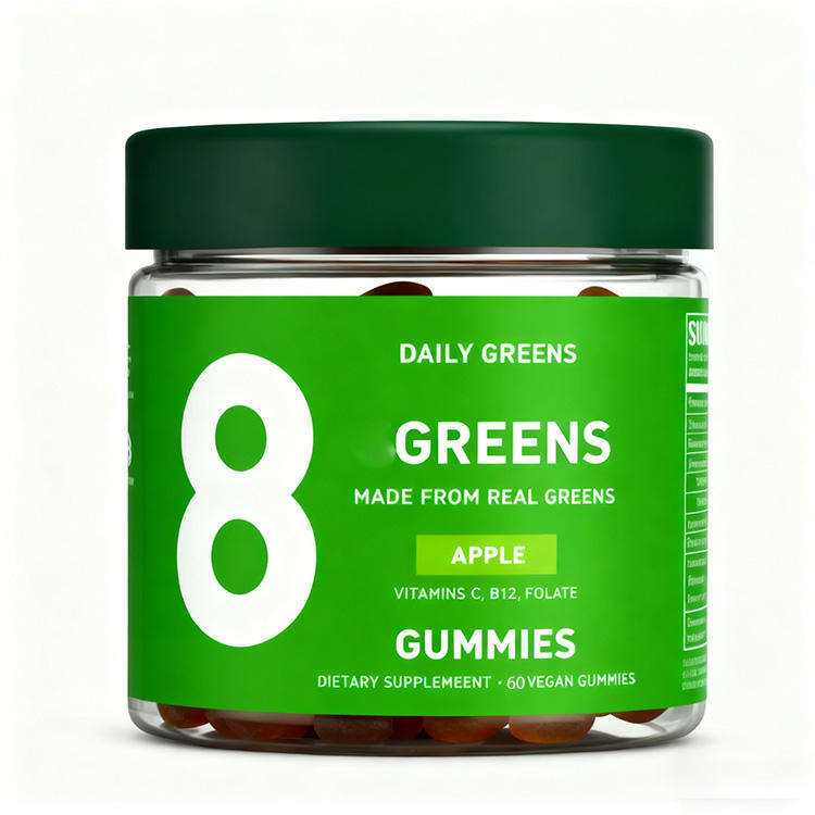 OEM ODM Adult Super Greens Gummies Multivitamin Spirulina Chlorella Fiber Antioxidant Benefits-Vegan Natural Gummy Candy