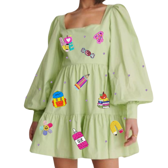 Products Name:Square neck Back-to-school Dress