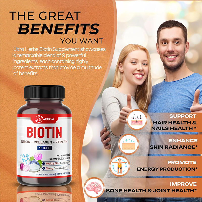 OEM/ODM Biotin Capsules Vegan Support Healthy Hair Skin Nails Vitamin Hair Care Capsule 10000mcg Collagen Capsules