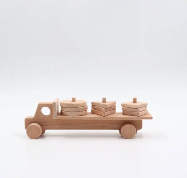 OEM ODM Classic Wooden Educational Puzzle Toy Geometric Blocks Enclosed Truck for Toddler Push Waldorf Montessori Natural Wood