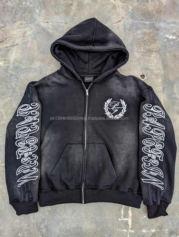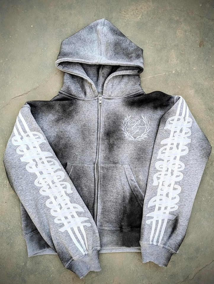 OEM ODM Custom Above Knee Shorts Sets with Zip up Embroidered Hoodie Vintage Acid Washing Printed Tracksuits Zipper Hoodies Sets