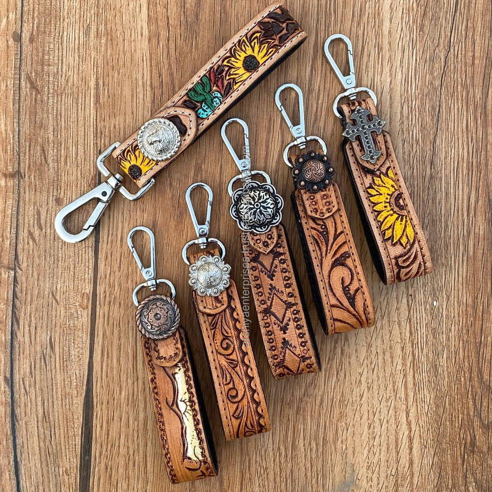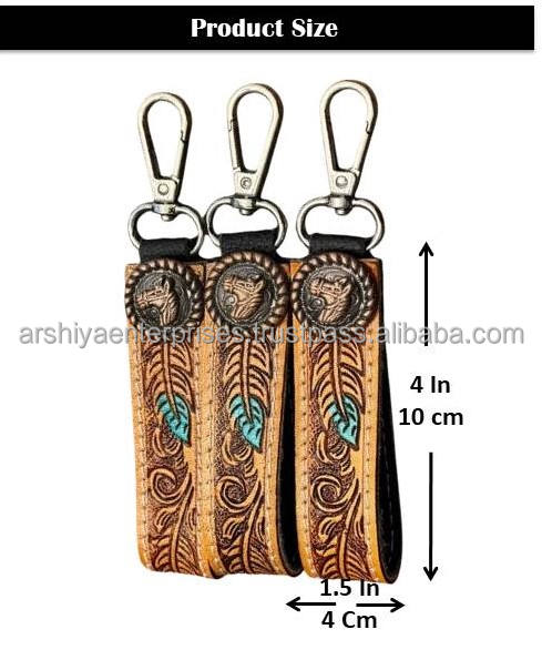 Product name:Hand Tooled Metal Concho Key Chain Leather