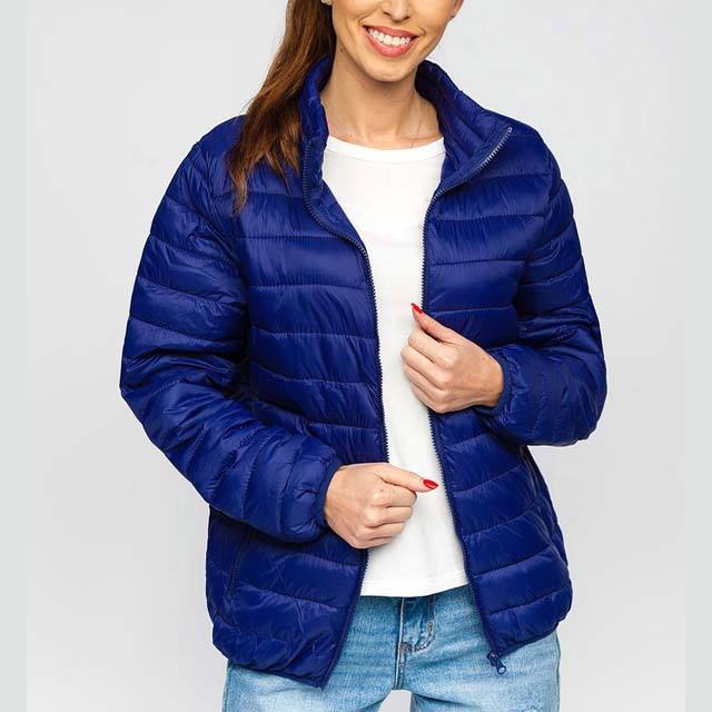 OEM ODM Custom Logo Outdoor Shiny Bubble Jacket Winter Coat Women Down Puffer Jacket With Stand Collar Navy Blue Color