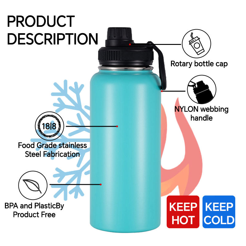OEM/ODM Custom Logo Wide Mouth Sport Bottle 32oz Double Wall Stainless Steel Vacuum Insulated Leakproof Lid Camping Applicable