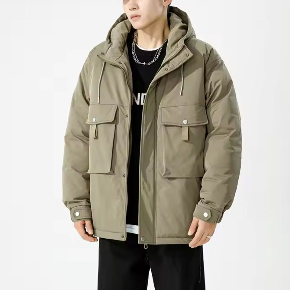 OEM ODM Custom Long Stand Cotton-padded Winter Workwear Style Warm Comfortable Personalizes Loose Men Hooded Puffer Jackets