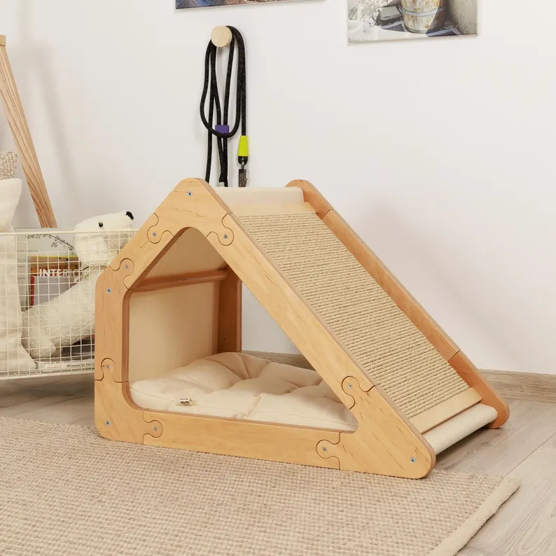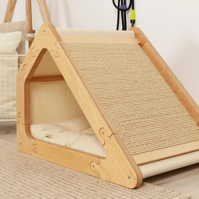 OEM ODM Custom Modern Cat Bed Changeable Scratchers Soft Cotton Cushion Pine Wood Furniture Direct Factory Supply for Pets
