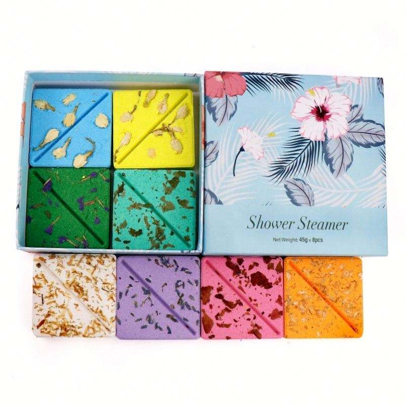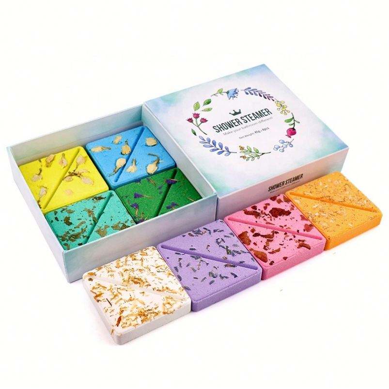 OEM/ODM Custom Packaging Relaxing Natural Vegan Organic Scented Aromatherapy Bath Fizzies Square Shower Steamers